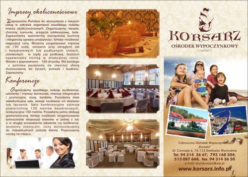 KONTAKT: 94 314 2667, 513 087 668 , biurokorsarz@wp.pl lub osobiście na miejscu: ul. Conrada 6-6B, Darłówko Wschodnie ( nadmorska dzielnica Darłowa).