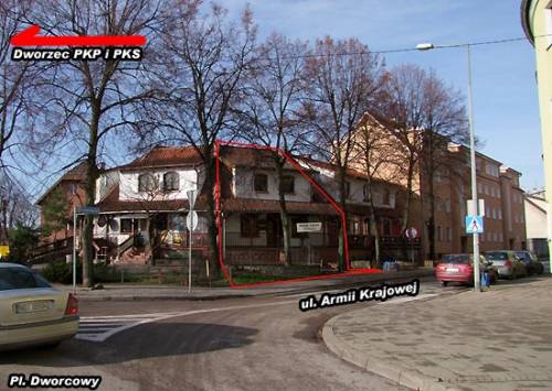 Budynek (rok bud. 1990) w zabudowie szeregowej - znajduje sie na rogu głównych ulic prowadzących z miasta i portów jachtowych do dworca.