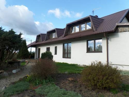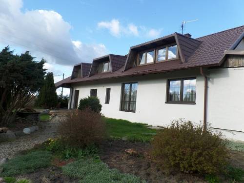 Solidny budynek z czerwonej cegły wybudowany na kamiennych fundamentach. Zmodernizowany i rozbudowany w latach 90. Dom z wyraźnie rozgraniczoną częścią prywatną, mieszkalną o powierzchni około 120m2, zlokalizowaną na parterze oraz na piętrze pokoje gościnne w pełni wyposażone i urządzone , z łazienkami. Istnieje możliwość rozbudowy i adaptacji budynku - można uzyskać dodatkową powierzchnię około 70m2.