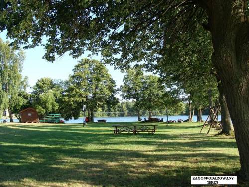 Teren ergonomicznie zagospodarowany, posiadający boisko, miejsce do plażowania, pole campingowe, miejsca do biesiad przy ognisku, slip do wodowania jachtów i sprzętu pływającego, umocnione nabrzeża, oświetlone pomosty do cumowania 12 jachtów z przyłączem wody, parking dla samochodów.