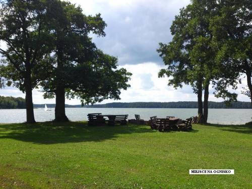 4. Drewniany budynek biesiadno-szkoleniowy, położony nad brzegiem jeziora, ocieplony, z zapleczem sanitarno-kuchennym i kominkiem.