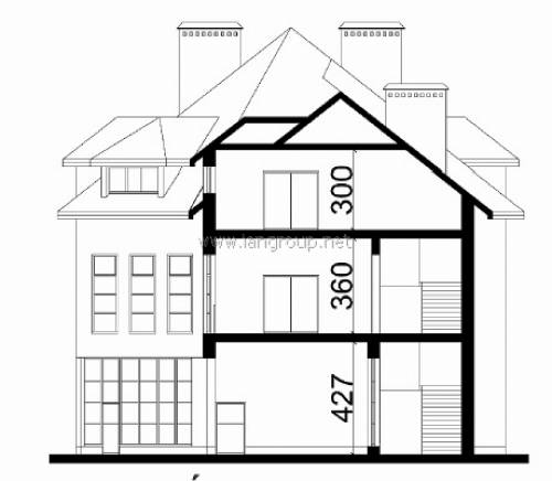 Budynek z 2016 roku, na który składają się trzy kondygnację o wysokości odpowiednio 4,27m, 3,60m oraz 3,00m.