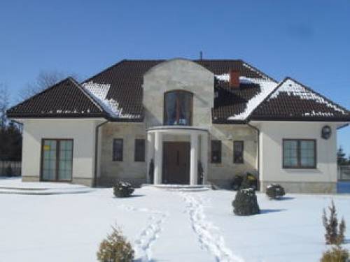 Dom o wysokim standardzie wykończenia - w kuchni blaty oraz ściany granitowe, na podłogach w pokojach wysokiej jakości parkiety, w kuchni i łazienkach glazura, terakota, schody wewnętrzne - dębowe
