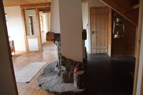 2. Stodoła z XIXw. z grubych bali drewnianych przeniesiona w 2001r od tych samych ludzi z Podkarpacia, co dom. Stan bali idealny. W stodole na piętrze podłoga i okno ? tu dzieci miały swój klub, można wstawić bilard, albo po prostu posiedzieć w spokoju czy trzymać siano. Na parterze 1/3 to pokój z oknami i podłogą drewnianą, reszta to klepisko. Do stodoły przylega duży kojec dla psów podzielony na dwie osobne części. W stodole instalacja elektryczna i alarmowa. Dach stodoły kryty blachodachówką ? bardzo ładna.