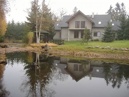 Sprzedam stylowy dom wolnostojący nad naturalnym stawem w atrakcyjnym położeniu niedaleko Trójmiasta. Dom powstał na bazie własnego projektu i jest nowy (3 lata temu rozpoczęto budowę). Posiada 2 mieszkania z osobnymi wejściami. Bryła domu składa się z parteru i poddasza o całkowicie użytkowym przeznaczeniu (w której ulokowano pokoje sypialniane i gościnne). Mniejsze mieszkanie o powierzchni 42 m2 oddzielone jest od drugiego wewnętrznym garażem (sypialnia, pokój dzienny z aneksem kuchennym, łazienka, przedpokój) znajduje się na parterze. Idealnie nadaje się jako lokal do prowadzenia działalności gospodarczej lub jako mieszkanie dla młodego/starszego małżeństwa, samotnej osoby etc. Drugie mieszkanie o powierzchni 245 m2 składa się z garażu, dużego przedpokoju, małej łazienki z wc, przestronnej kuchni, spiżarni, kotłowni, pokoju, jadalni połączonej z salonem. Meble kuchenne są zainstalowane wraz ze sprzętem agd. Na pietrze znajduje się 5 pokojów o znakomitym doświetleniu, garderoba (zabudowana meblami na wymiar), łazienka (z pełną możliwością wykończenia), wc. 3 pokoje są całkowicie przygotowane do wykończenia we własnym stylu i guście. W suficie znajduje się wejście na obszerny strych. Działka całkowicie zagospodarowana z pięknie wyglądającym ogrodem w stylu japońskim - opcja dobudowania tarasów wokół domu i np. w kierunku stawu. Dom posiada odbiory techniczne; zasilany prądem, gazem oraz wodociągiem. Kanalizacja wykonana jako oczyszczalnia ekologiczna. Dach całkowicie orynnowany i pokryty dachówką. Elewacja do samodzielnego wykończenia (zawiera ocieplenie). Malownicze położenie na szczególnie pięknej działce o wielkości 1203 m2 w bliskości do lasu. Okolica ozdobiona okolicznymi stawami i zabudową wolnostojącą na dużych działkach sąsiednich. 3 minuty odległości samochodem do drogi krajowej łączącej Gdańsk z Kartuzami. 3 minuty jazdy do ośrodka zdrowia, poczty, centrum handlowego (bank, piekarnia, apteka, sklepy spożywcze). 10 minut marszu do pętli autobusowej łączącej Gdańsk, Żukowo, Kartuzy. 10 minut samochodem do przystanku kolejowego w Rębiechowie (łączy trasę Gdynia - Kościerzyna). 15 minut samochodem do lotniska Gdańsk Rębiechowo. Wokół działki posadzone drzewa i ekologiczny płot z drewna. Dodatkowo wydzielone miejsce do spędzania czasu na świeżym powietrzu (kamienny stolik z siedziskami oraz drewniana ława nad wodą). Dodatkowo wyspa, na której znajduje się altana. Dom z klimatem i ciepłem!!!