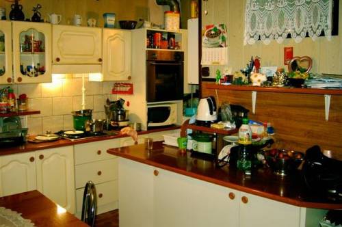 Na parterze znajduje się widna oddzielna kuchnia, 2 pokoje (salon + sypialnia), łazienka, dwa przedpokoje oraz spiżarka.