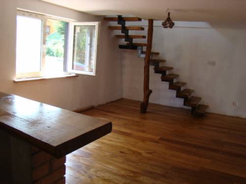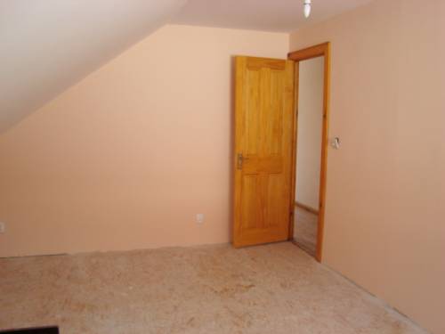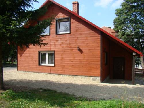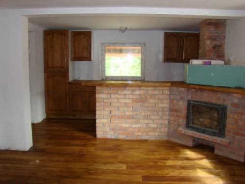 Nieruchomość ogrodzona. Dom wolnostojący o powierzchni mieszkalnej ok.154m2, wykonany w technologii tradycyjnej z bali drewnianych. Elewacja budynku wykonana z desek sosnowych. Dach pokryty blachą trapezową. Okna nowe, plastikowe. Wszystkie drzwi nowe: wewnętrzne - drewniane, wejściowe - metalowe. Podłogi w pokojach i salonie nowe drewniane (deska dębowa), w łazienkach ? płytki. Schody wewnętrzne drewniane dębowe. Łazienki wyłożone płytkami, wyposażone w nowiutkie urządzenia sanitarne. Pomieszczenia w budynku: parter: salon z częścią kuchenną (kominek, nowe meble dębowe), 2 pokoje, korytarz, łazienka, poddasze: 3 pokoje, łazienka, korytarz. Media: woda ? wodociąg, prąd, kanalizacja, c.o. (brak pieca), możliwość podłączenia telefonu. Nieruchomość położona w cichej i spokojnej okolicy, w pobliżu centrum miejscowości.