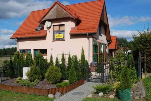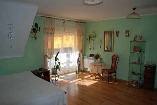 (odkurzacz centralny), kotłowni i łazienki (ogrzewanie podłogowe), natomiast poddasze użytkowe to : przestronny hall z którego mamy dostęp do 4 przestronnych sypialni ( dwie posiadają loggie) oraz łazienka (podgrzewanie podłogowe). Nad częścią mieszkalną znajduje się niewysokie pomieszczenie strychowe ze świetlikiem (dostęp do komina). Dach pokryty jest dachówką ceramiczną, stopnie kominiarskie, płotki przeciwśniegowe, orynnowanie tytanowo-cynkowe. Dom położony jest na działce o pow 2141,5 m2, wyłożony polbrukiem (ok 600m2), część rekreacyjna z oczkiem wodnym i szklarnią. Nieruchomość znajduje się w spokojnej okolicy domków jednorodzinnych, wśród pól i lasów.Do jeziora 15 min. spacerkiem , 10 min. samochodem do rzeki Słupii. Cena do negocjacji.Więcej zdjęć na www.bytowska.pl w zakładce " Sprzedam dom na Kaszubach "