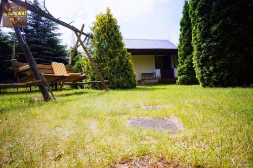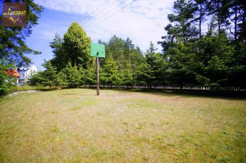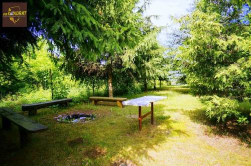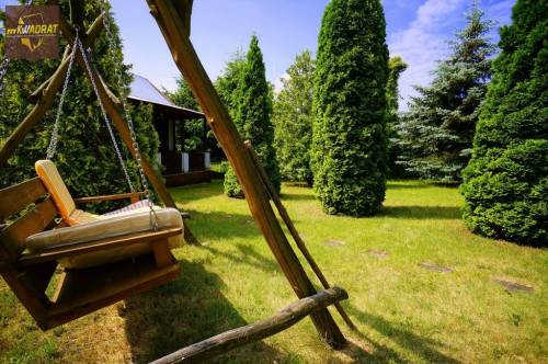 Działka ogrodzona, zagospodarowana - liczne drzewka, miejsce na ognisko, drewniana huśtawka, zadaszony drewniany stół z ławkami, do którego doprowadzono prąd.