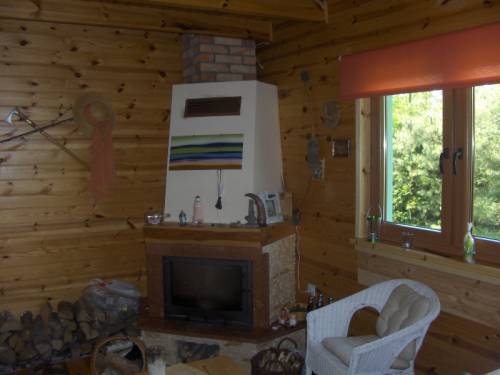 Dach wykończono blachodachówką.Okna plastikowe. W salonie znajduje się kominek.
