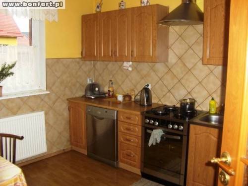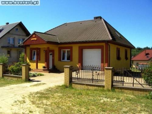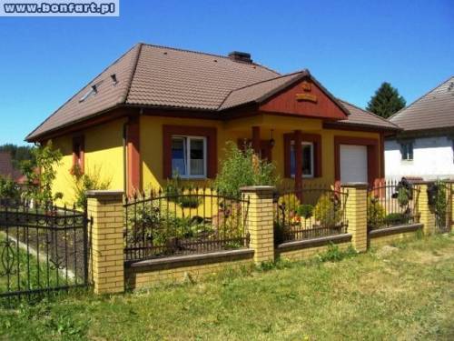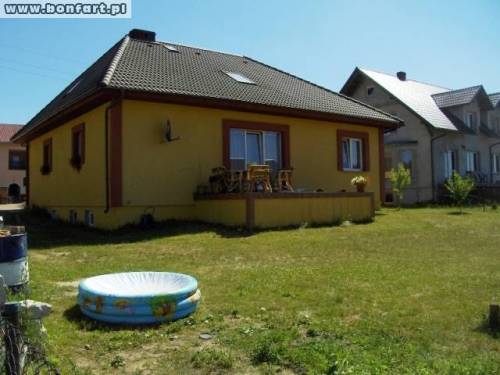 Dom jest ogrodzony, działka ładnie zagospodarowana drzewkami owocowymi i krzewami ozdobnymi. Atutem tego domu jest ekonomiczność (można kupić za mieszkanie w trójmieście i utrzymać za niewielkie pieniądze - 300 zł ogrzewanie w sezonie zimowym).Dom graniczy z polem i lasem od strony ogrodu , od wejścia z podobnymi domami. Dom idealny dla młodej rodziny ale również starsze osoby czułyby się w nim wspaniale i komfortowo.