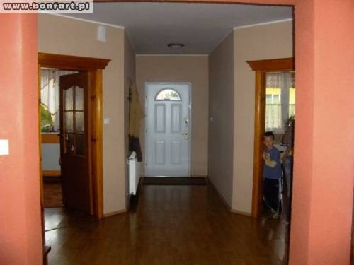 Dom wybudowany z dobrej jakości materiałów - pustak keramzytowy i docieplony 10 cm styropianem, otynkowany sylikonowym tynkiem szlachetnym. Dach docieplony wełną mineralną, wykończony dachówką. Ściany cekolowane i malowane, stolarka drzwiowa drewniana, podłogi panele i kafelki. Woda miejska, kanalizacja. Ogrzewanie z własnej kotłowni ( piec na trociny, drzewo, węgiel)aktualnie ogrzewany trocinami, ekonomicznie i tanio ( trociny łatwo dostępne).