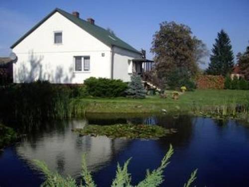 Powierzchnia działki wynosi 3500mkw, wokół domu znajduje się zagospodarowany ogród, staw, krzewy, drzewa.
