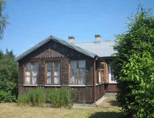 Dom usytuowany w miejscowości Grabina Radziwiłłowska gm Puszcza Mariańska pow Żyrardowski oddalony okolo 50 km od Warszawy. Dom składa się z trzech pokoi ? 19; 17,5; 18,5 m2, kuchni 8,7 m2; przedpokoju (łącznie z drugim WC) 4,5 m2; łazienki (wanna, osobny prysznic, umywalka, terma, WC) 14 m2; garażu 28 m2; poddaszonego tarasu 8,7 m2. Ogólna wewnętrzna powierzchnia zabudowy 119,2 m2. Obok domu znajduje się gospodarcza stodólka. Powierzchnia działki prawie 1,8 tysiące m2. Działka może być łatwo podzielona na dwie, z dostępem do drogi publicznej. Dom budowany w tradycyjnym stylu skierniewickim z nieżywicowanych bali , bardzo suchy, ocieplony, nowe podłogi, ściany i sufity.