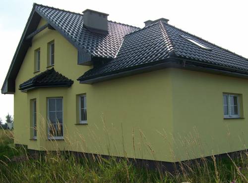 Ściany zwnętrzne: porotherm + ocieplenie. Ocieplenie poddasza i okładziny skosów i sufitów z płyt g/k.