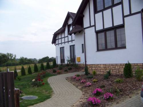 Dom jest ciekawie zaprojektowany budynekiem w stylu Tudoriańskim . Dodatkowo na działce garaż wolno stojący- 24 m2 .