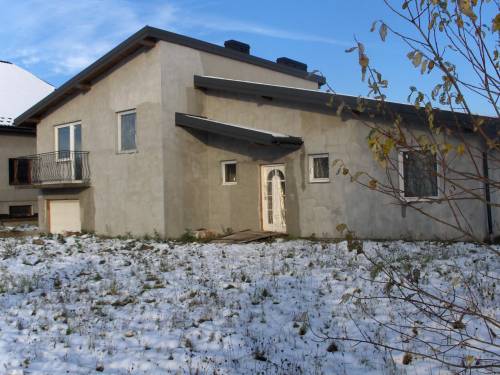 Dom o powierzchni użytkowej 160 m2, na działce 735 m2. Bardzo fajny dom położony przy drodze asfaltowej. Dom posiada ogrodzenie murowano-metalowe. W środku domu zrobione tynki oraz wylewki. Posiada takie instalacje jak: wodna, kanalizacyjna, elektryczna i co. parter- ogrzewanie podłogowe, pokoje- grzejniki. Jest możliwość zainstalowania kominka - wykonane instalacje kominkowe. Na działce zainstalowana przydomowa oczyszczalnia ścieków. Budynek został zgłoszony do odbioru i uzyskał pozwolenie na użytkowanie. Ocieplony styropianem 9 cm. z wypełnieniem grafitowym. Pozostało do wykonania: