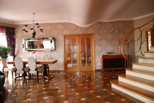 Budynek o nowoczesnej, ciekawej architekturze. Wybudowany w 1998 r. Część mieszkalna posiada 3 kondygnacje o łącznej powierzchni 450 m2. Pomieszczenia wykonane w wysokim standardzie wykończenia. Podłogi, kolumny, fasady z gresów i marmurów. Piękne i duże drewniane balustrady.