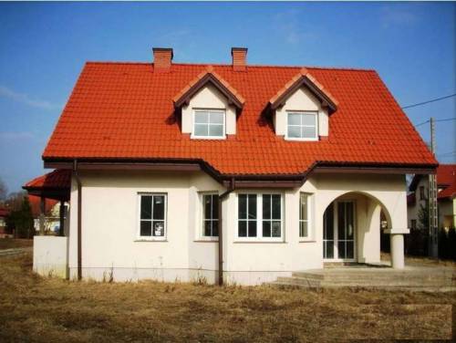 Dom wykonany w technologii tradycyjnej -z porotermu ceramicznego, kryty dachówką ceramiczną Braasa.Okna profil Veka.Zamontowane drzwi wejściowe.