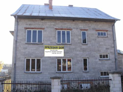Dom w miejscowości Komórki gmina Daleszyce, w niedalekiej odległości od jeziora w Szczecnie. Dom wolnostojący piętrowy w połowie podpiwniczony z poddaszem nieużytkowym ewentualne do adaptacji. Stan zaawansowania robót-do wykończenia. Piwnice wykonano z kamienia łamanego. Ściany nadziemia- mur warstwowy z pustaka żużlowego i połowy suporeksu.