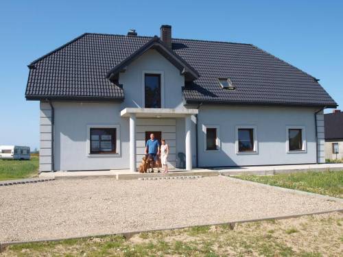 Ogrzewanie podlogowe w salonie i w apartamencie + kaloryfery w calym domu. Podloga na parterze w calosci w terakocie. Pietro w trakcie wykanczania.
