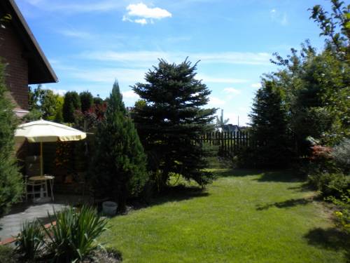 Ogród jest pięknie zagospodarowany całkowicie odsłoniety od sąsiadów tujami i żywopłotem. Na działce znajduje się oczko wodne z rybami, niezamarzające (gł. 3m).