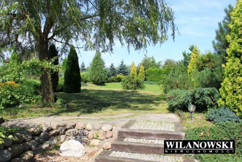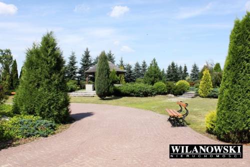 Na terenie posiadłości znajduje się także szeroki, okrągły podjazd wyłożony kostką, parking, ekologiczne szambo, studnia głębinowa, sadek owocowy, ogródek warzywny, murowany grill, huśtawka, składzik na narzędzia ogrodnicze, wypielęgnowane automatycznie nawadniane trawniki, klomby oraz oświetlane spacerowe alejki.