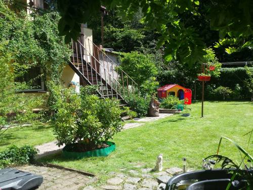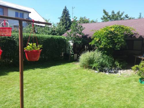 Z przyziemia można wyjść na piękny , zielony ogród, w którym znajduje się wiata z wyodrębnionym miejscem do grillowania i do biesiadowania, oraz pomieszczenie gospodarcze.