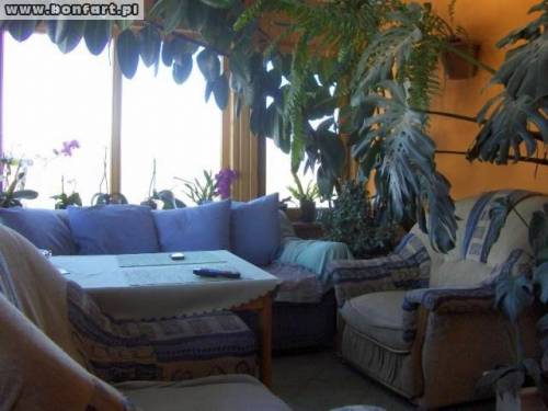 Parter składa się z dużego przestronnego przedzielonego salonu, aneksu kuchennego, sypialni, łazienki i osobnego wc. Na parterze zabudowano werandę tworząc swoisty ogród zimowy.