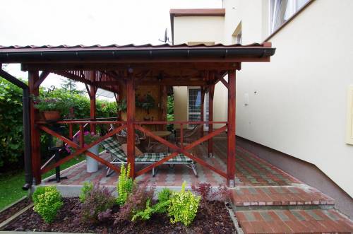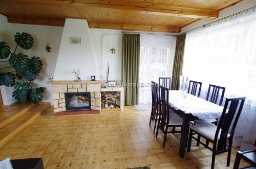 - salon z kominkiem i wyjściem na zadaszony taras ,