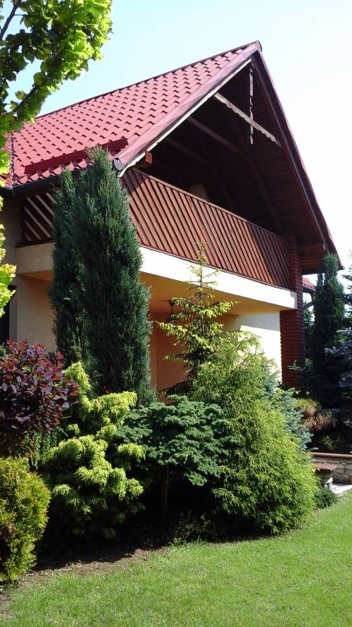 Dom położony na 20 arowej działce ogrodzonej pięknie zagospodarowanej. Dom parterowy z mieszkalnym poddaszem. Posiada trzy sypialnie,garderobę hall, dwie łazienki, oddzielną ubikację, samodzielną wyposażoną kuchnię, dwa duże salony, garaż. Dodatkowo dwa balkony oraz trzy tarasy w tym jeden 30 metrowy. W ogrodzie jest wiata dwustanowiskowa na samochdy oraz altana. Istnieje możliwość pozostawienia umeblowania.