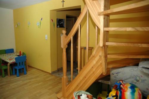 Piętro: korytarz , 4 pokoje, łazienka + wc, w pokojach wykładziny.