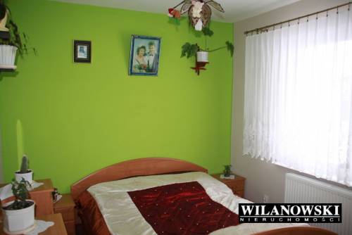 Dom parterowy z poddaszem użytkowym o powierzchni ok. 80 m2, częściowo podpiwniczony. Wybudowany z czerwonej cegły, rozbudowany ok. 5 lat temu z pustaka, ocieplony styropianem 10 cm i otynkowany. Dach skośny pokryty blachą, okna plastikowe.