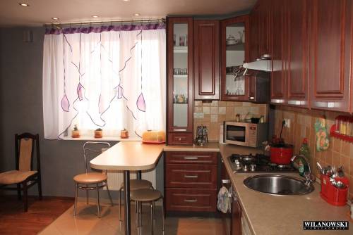Wnętrze domu po generalnym remoncie. Na podłodze panele/terakota, ściany w gładziach gipsowych i glazurze, schody prowadzące na piętro ? drewniane, podwieszane sufity z oświetleniem punktowym, ogrzewanie podłogowe (w kuchni, łazience, korytarzu, wiatrołapie), nowa instalacja elektryczna, grzewcza i hydrauliczna.