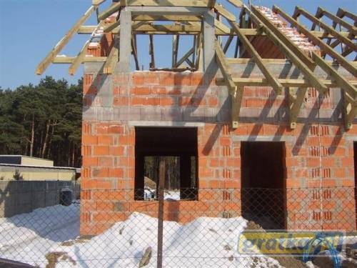 Dom w trakcie budowy obecnie na etapie dachu ale cały czas trwają prace, więc stan zaawansowania się zmienia, przewidywany termin doprowadzenia budynku do stanu deweloperskiego lato 2011r.