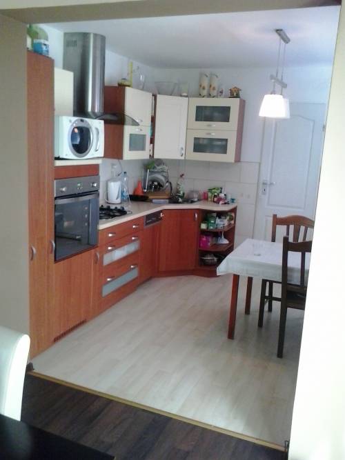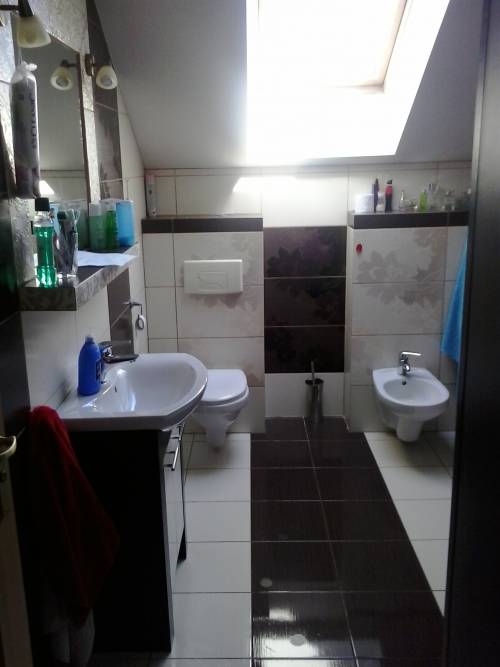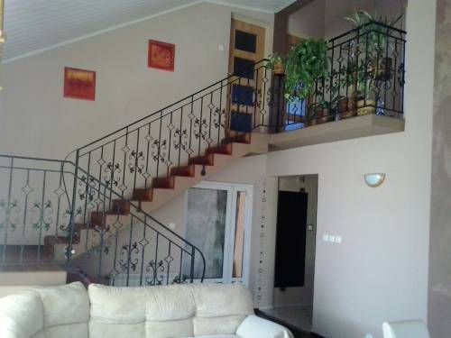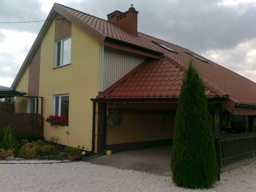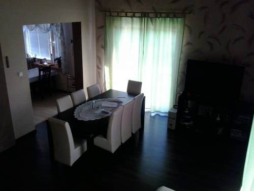 Dom o powierzchni 140 m2, działka 2.300 m2, w Nasielsku, przy wylotowej z miasta drodze w kierunku stacji PKP, w cichej spokojnej okolicy. Zbudowany z pustaka, ocieplony od zewnątrz styropianem. Dach deskowany, pokryty blacho - dachówką. Ogrzewanie na olej opałowy. Działka porośnięta trawą, iglakami, krzewami i drzewkami. Posesja z 3 stron ogrodzona metalową siatką, a od frontu podmurówką ze słupkami z granitowej kostki z metalowymi segmentami i bramą wjazdową sterowaną na pilota. Dalej, do samego domu ciągnie się ok. 100 m droga wewnętrzna wysypana jasnym kruszywem. Bezpośrednio przy domu stoisko na 2 samochody zadaszone wspólnym z domem dwuspadowym dachem. Osobno blaszany garaż na rowery narzędzia ogrodnicze itp. Usytuowanie działki zezwala na dostawienie 1-2 domów. Na tyle działki zaplanowana przez miasto poprzeczna droga dojazdowa. Na przedzie posesji wydzielona osobna działka o pow. 1200 m2. Możliwa sprzedaż całości – razem ok. 3500 m2. Rozkład pomieszczeń. Parter: salon 30 m2 z otwartą kuchnią o pow. 14 m2 (w niej wydzielona spiżarnia), meble ze sprzętem AGD, sypialnia o pow. 14 m2, pomieszczenie o pow. 15 m2 - do wykończenia pod pokój lub oranżerię, łazienka, kotłownia, hol i korytarz. W salonie schody z metalową balustradą. Z salonu przy kuchni wyjście na drewniany ażurowy taras - od wschodu. Na piętrze 3 pokoje 2x14 m2 i 19 m2 z łazienką wyposażoną w dużą wanno-kabinę z funkcją sauny parowej. Na podłogach terakota i panele. Otwartość pomieszczeń parteru i brak sufitu nad salonem sprawia wrażenie przestronności oraz powiększa optycznie. Nasielsk posiada bardzo dobre połączenia kolejowe i drogowe do Warszawy, Legionowa i Nowego Dworu. Czas dojazdu koleją do W-wy - 1h, do lotniska Modlin 30 min. W sąsiedztwie posesji przystanek autobusowy, z linią autobusową na dworzec PKP, niedaleko przedszkole prywatne oraz gimnazjum. W rozliczeniu mogę przyjąć mieszkanie 2 pokojowe w Legionowie. Cena 420 tys. zł, Kontakt : 606-103-153