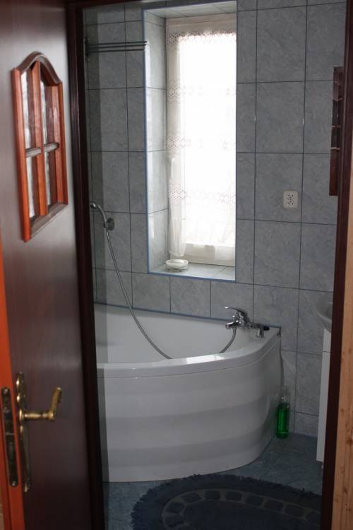 - kafelki w obydwu łazienkach; u dołu - kabina, u góry - wanna