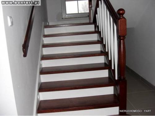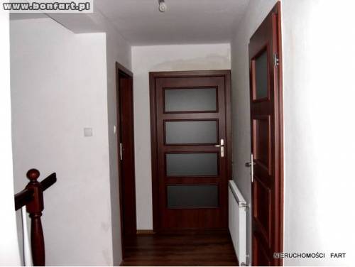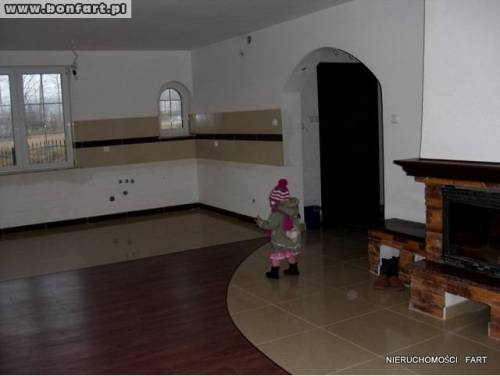 Ściany wycekolowane, pomalowane na biało, okna plastikowe w kolorze dębu, drewniane podświetlane schody dębowe i barierki. Podłogi podgrzewane w łazience, w hallu na górze i na dole. W kuchni są wyciągniete kable do wideofonu (góra dół), jest kabel do otwierania bramy na pilota i furtki, w ścianach kable do podłączenia alarmu oraz kable w ścianach do podłączenia głośników stero w salonie. W jednym z pokoi jest kabel do podłączenia internetu. Z salonu wyjście na taras i tył domu. Podwórko do zagosodarowania jest z boku.