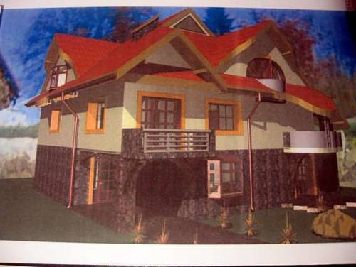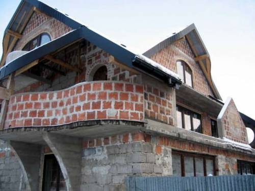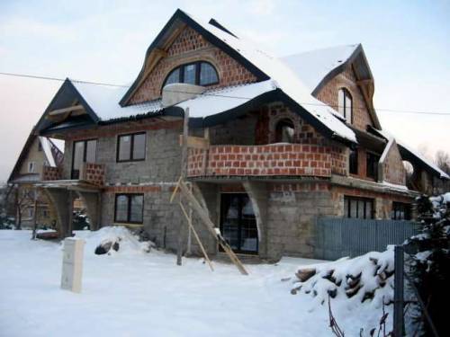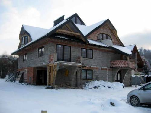 Dom został częściowo wybudowany w latach dziewięćdziesiątych, a w roku 2009 został nadbudowany i przebudowany. Posiada okazały dach o zaokrąglonych kształtach z czarnej blacho dachówki ice crystal, czarne rynny, dwa duże kominy SCHIDEL obmurowane cegłą w kolorze grafitowym. Okna i drzwi zewnętrze w całym domu w kolorze mahoń firmy Okno Plast. Na piętrze dwa śliczne okrągłe balkony oraz duży taras z fantazyjnymi murkami.