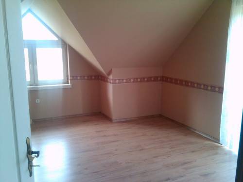 Dom wybudowany z porotermu, dach pokryty dachówką ceramiczną firmy Roben (dwukolorowa - liść jesieni), tynk akrylowy, ogrodzenie wykończone, dwie przesuwne bramy wjazdowe (7m i 9m), teren wokół domu zagospodarowany zielenią, utwardzony.