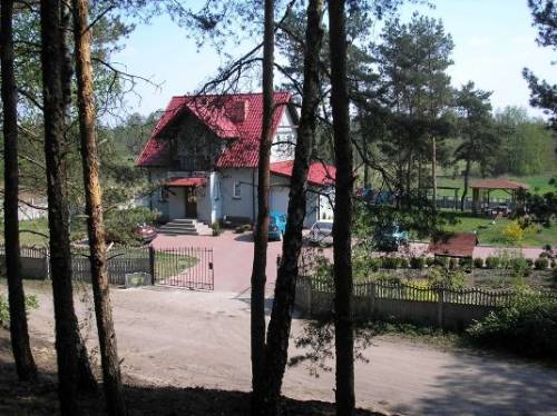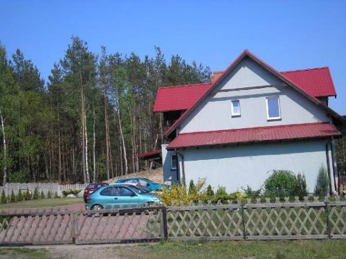 Dom wolnostojący, 3 sypialnie na pierwszym piętrze z balkonami, tam też łazienka z wc, z pierwszego piętra wejście na strych. Parter salon z kuchnią oddzielną, z salonu wyjście na taras, jest też łazienka i wc osobno. piwnica z kotłownią i spiżarnią. oprócz tego jest drugi budynek z 4 pokojami gościnnymi wyposażonymi w prysznice ( ja tam prowadze hotelik) w tym budynku są dwie ubikacje, pomieszczenie z tak zwaną kawiarenką oraz pomieszczenia gospodarcze. Całość leży na powierzchni powyżej 5 ha, w tym stawy rybne i las