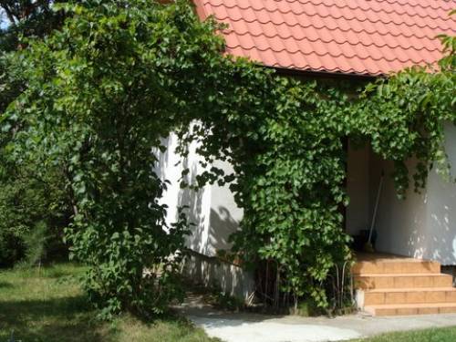 Teren jest zadbany, zazieleniony, na działce znajduje się mały domek gospodarczy.