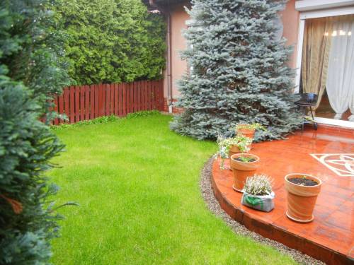 Wykończony w wysokim standardzie, na działce 207 m2, stanowiącej własność gruntu dom w zabudowie szeregowej położony w bocznej cichej, zamkniętej dla ruchu uliczce na kameralnym i strzeżonym osiedlu Zielone Pole w Szczecinie-Przecławiu, z podgrzewanym garażem (możliwość parkowania łącznie 3 samochodów), o pow. użytkowej 148 m2 a całkowitej 180 m2. Miesięczne całkowite koszty utrzymania domu to 500-600 PLN.(gaz,prąd,woda,śmieci,media)
