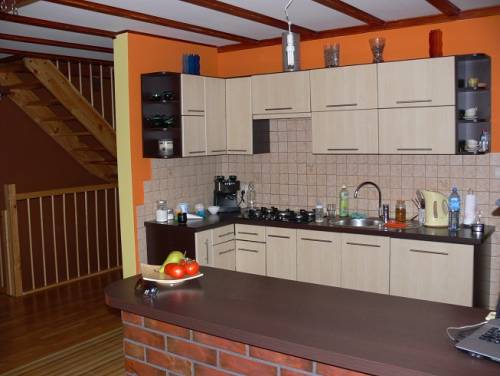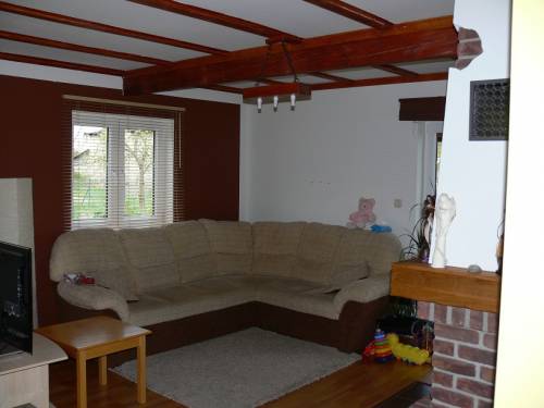 Wewnątrz i na zewnątrz dom praktycznie całkowicie wykończony włącznie z instalacjami, kominkiem Jotul-a, bez żadnych oszczędności na materiałach. Kompletna zabudowa kuchni, spiżarni i jadalni ze sprzętem AGD marki Siemens - w cenie domu . W piwnicy gres. Na parterze ściany z płyt gips-karton + cekol i farby, podłogi - deska barlinecka i kafelki, sufity - wyeksponowane belki stropowe.
