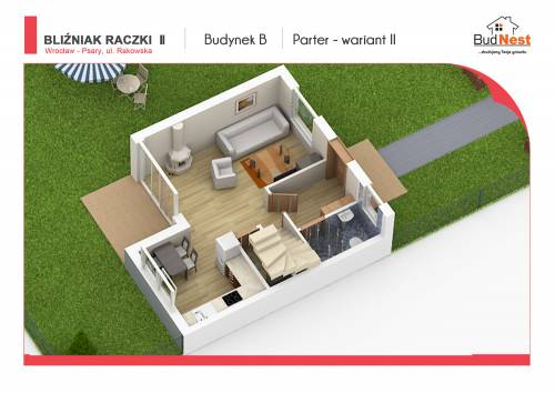 Północna część Wrocławia i pobliskie miejscowości to okolice przeżywające obecnie intensywny rozwój. Powstające tu centra handlowe, obwodnice i sukcesywnie rozszerzana sieć komunikacyjna sprawiają, że jest to jedna z najatrakcyjniejszych lokalizacji dla osób chcących uciec od miejskiego zgiełku, zachowując jednocześnie niewielki dystans do centrum. Najważniejszym atutem inwestycji Bliźniaki Raczki jest jej położenie - kameralny charakter ulicy Rakowskiej z pewnością otoczy mieszkańców ciszą i spokojem. Pasry od granicy Wrocławia dzieli zaledwie kilometr. Dojazd do ul. Żmigrodzkiej czy ul. Kamieńskiego trwa kilka minut. Przebiegająca tędy obwodnica śródmiejska umożliwia szybki przejazd na południową i zachodnią stronę miasta oraz do autostrady A4. Dojazd do Rynku zajmie jedynie 10 minut. Również osoby niezmotoryzowane nie będą miały problemów z komunikacją do centrum. Autobus linii 908 w 15 minut dojeżdża do Dworca Nadodrze. Znajdujące się w Psarach szkoła podstawowa i przedszkole będą z pewnością wielkim udogodnieniem dla rodzin z dziećmi. Bliźniak Raczki w Psarach jest więc idealną lokalizacją dla osób aktywnych zawodowo, pracujących w centrum i jednocześnie ceniących ciszę i spokój.
