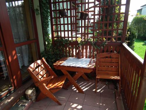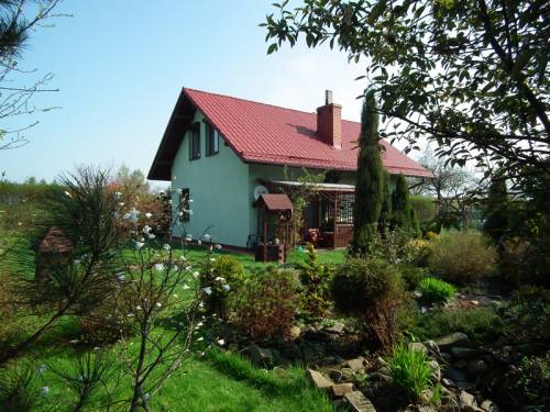 Działka pięknie zagospodarowana: krzewy ozdobne, iglaki, drzewa owocowe, kwiaty, od strony drogi posesję oddziela wysoki i gęsty żywopłot.