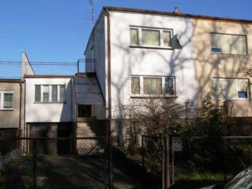 Dom o powierzchni użytkowej 114,50 m2, typu bliźniak, położony na nieruchomości gruntowej o powierzchni 387 m2. Umeblowany, gotowy do zamieszkania. Po częściowym remoncie, okna plastikowe w większej części użytkowej (4 pokoje, w tym 3 na piętrze, kuchnia, łazienka), a w pozostałej części użytkowej tzw. przybudówce - okna drewniane (tu - 2 pokoje). Duży taras - balkon (ok. 35 m2). Przestronny garaż w bryle budynku oraz piwnica. Betonowa część "podwórza" stanowi dojazd do garażu. Dach płaski.