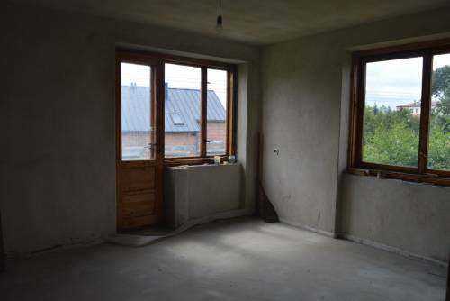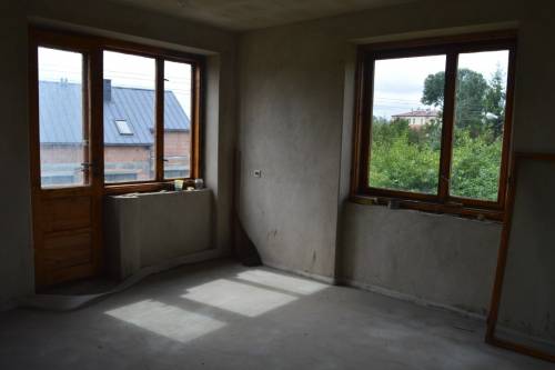 Ściany budynku zewnętrzne o gr.47 cm z cegły ceramicznej od zewnątrz i bloczków ceramicznych od wewnątrz. Ściany wewnętrzne i sufity posiadają tynki tradycyjne cementowo-wapienne. Na podłogach wykonano wylewki na izolacjach. Budynek wyposażony w kompletną stolarkę okienną drewnianą, drzwi wejściowe i wewnętrzne, do salonu dwuskrzydłowe wahadłowe.