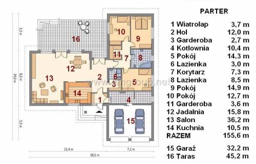 Układ pomieszczeń: PARTER 187,8 m²: