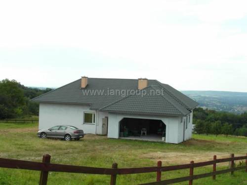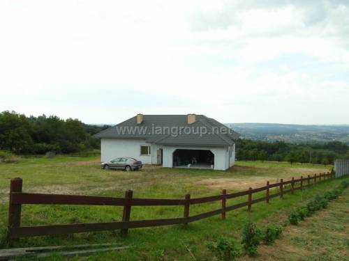 Dom wybudowany z wysokiej klasy materiałów według projektu DOM OKAZAŁY z niewielkimi zmianami , możliwość adaptacji poddasza na cele mieszkaniowe , wstawiono okna dachowe , dom o powierzchni użytkowej 155,6 m2 + garaż 32,2 m2 , poddasze do adaptacji około 70 m2 , działka 24 ary, dom wybudowany 2011 r , media : prąd na budynku , woda własna studnia na działce , kanalizacja własna do wykonania , działka duża ogrodzona z trzech stron , brama wjazdowa 5 m przesuwna , działka widokowa na południowym stoku , dojazd droga asfaltowa , bardzo ciche i spokojne miejsce , piękne widoki . Możliwość dokupienia działki przyległej 35 arów .